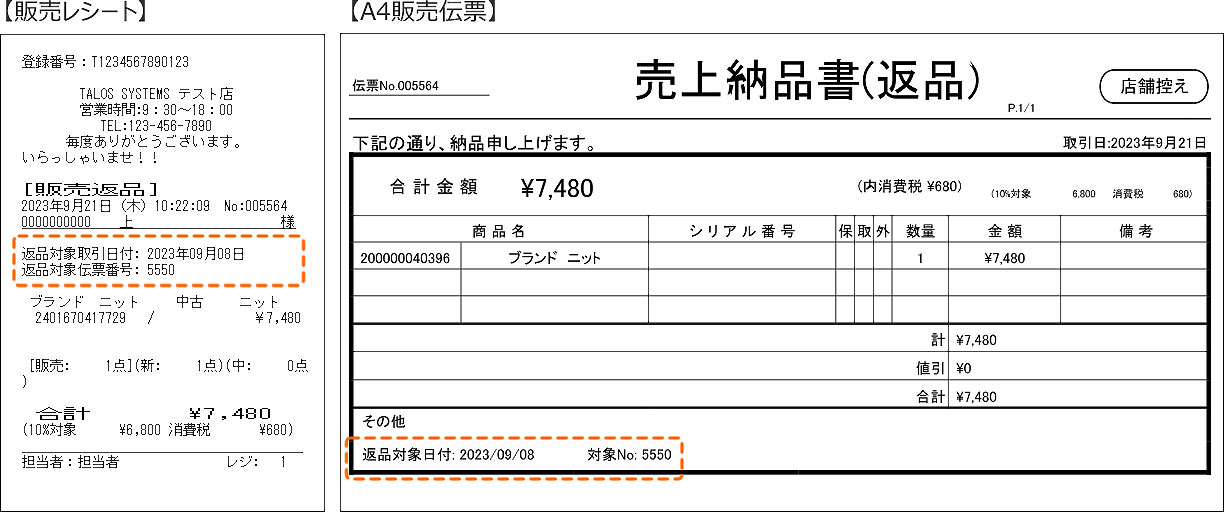 返品は販売時の取引履歴に紐づいていないため、販売を取り消す場合は「伝票取消(当日分のみ)」を推奨します。