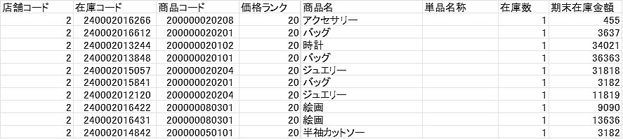 指定日時点の店舗在庫の一覧をCSV出力できます。