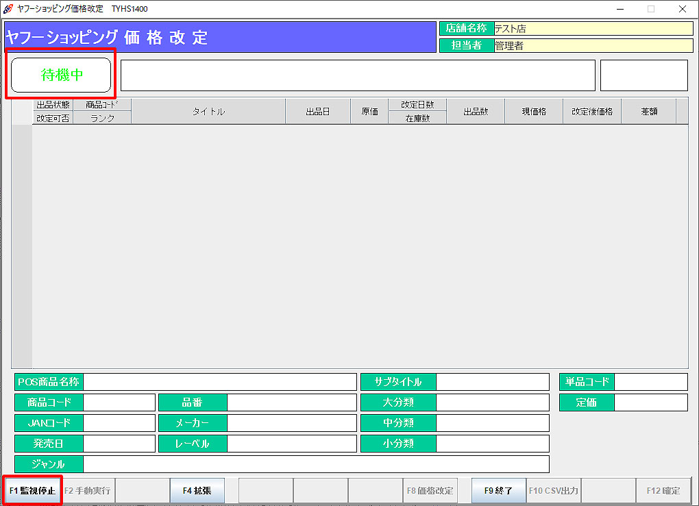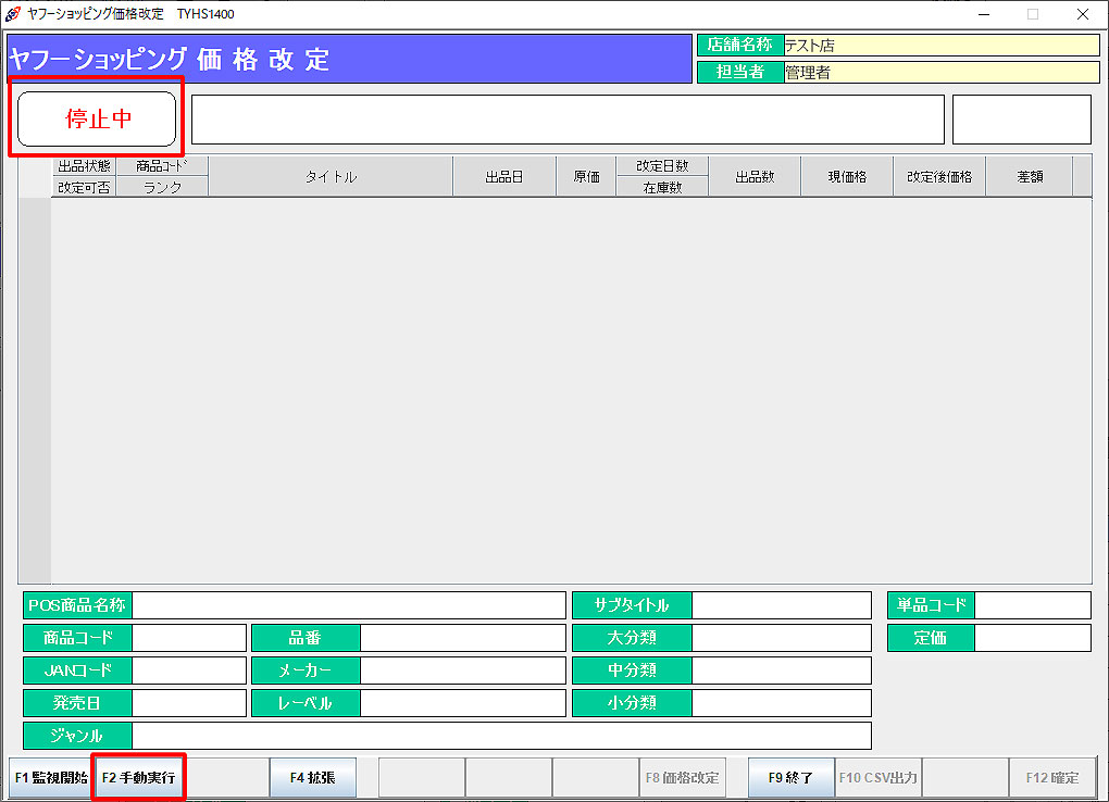 処理メニュー:「Yahoo!ショッピング価格改定」を開きます。