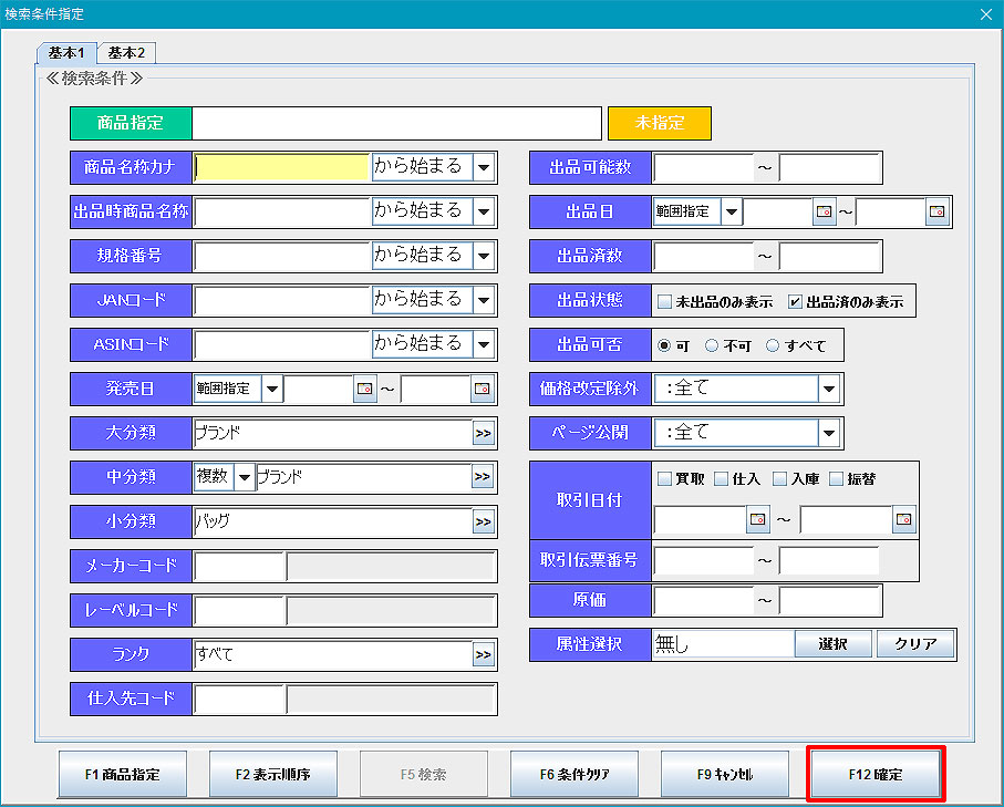 2.出品情報を編集、もしくは編集する必要がなければ、そのまま「F12実行」で出品します。
