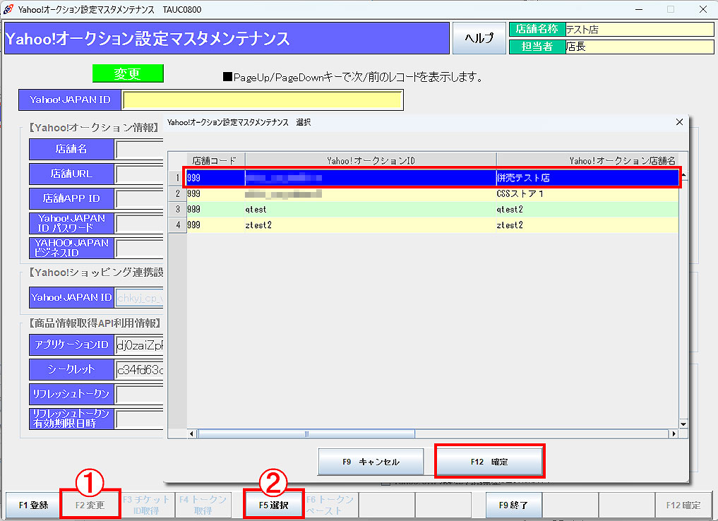 リフレッシュトークン ⑧ Yahoo!オークション設定マスタ画面に戻ります。