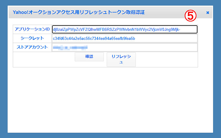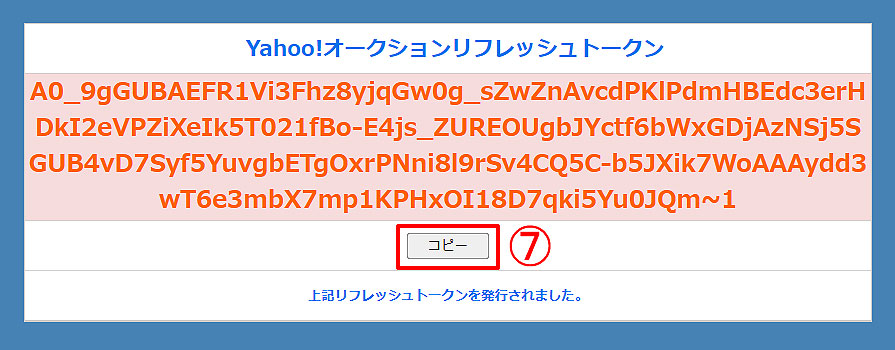 リフレッシュトークン ⑦ 「Yahoo!オークションリフレッシュトークン」が発行されます。