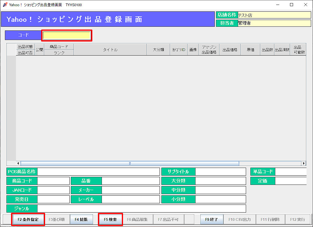 ※ 「F1商品指定」より「商品コード」「JANコード」「規格番号」「単品コード」で商品を指定することもできます。
