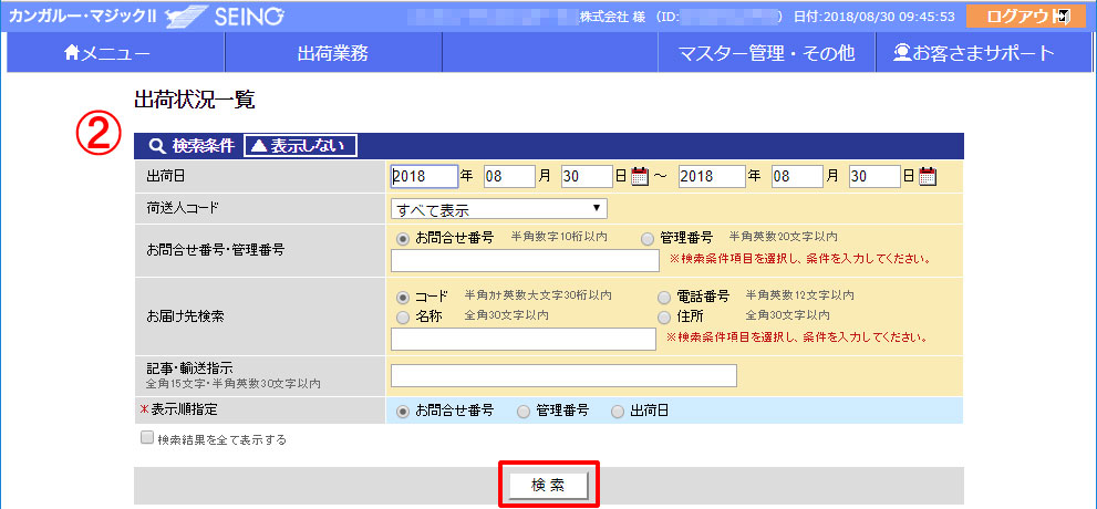 ③ 条件に当てはまる出荷状況一覧が抽出されます。
