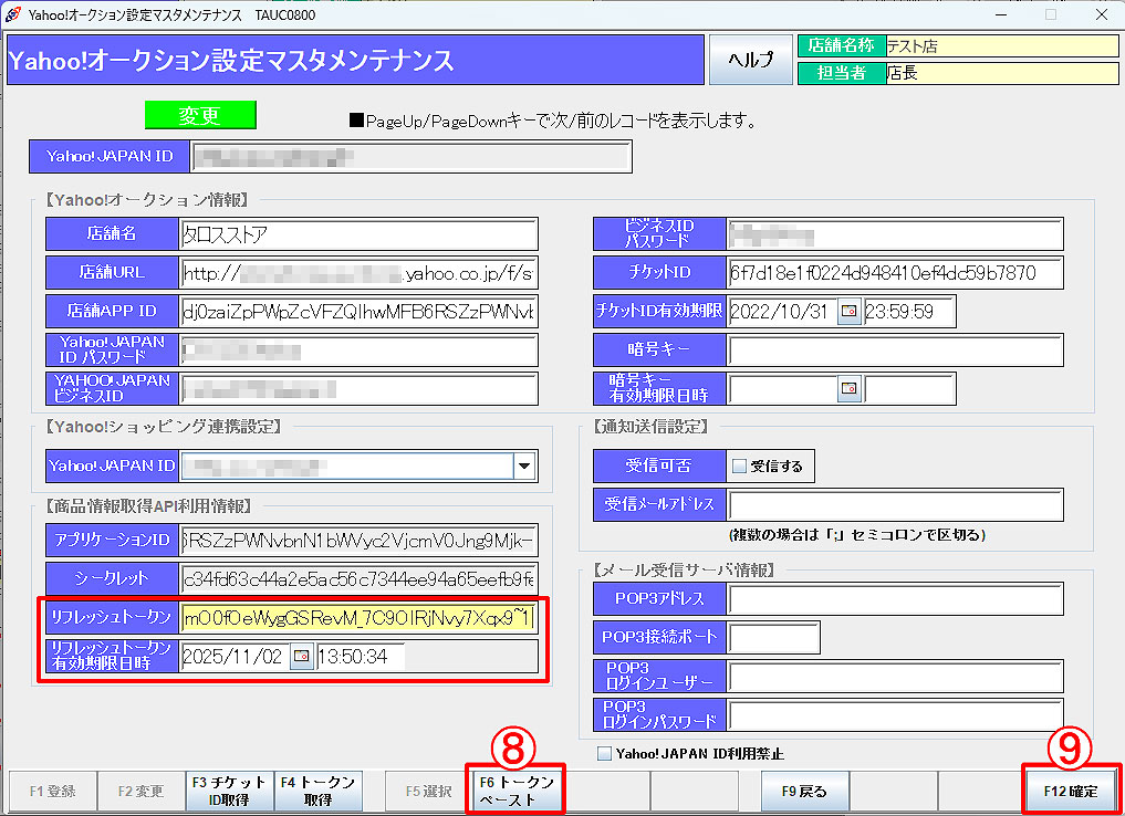 ⑧ Yahoo!オークション設定マスタ画面に戻ります。