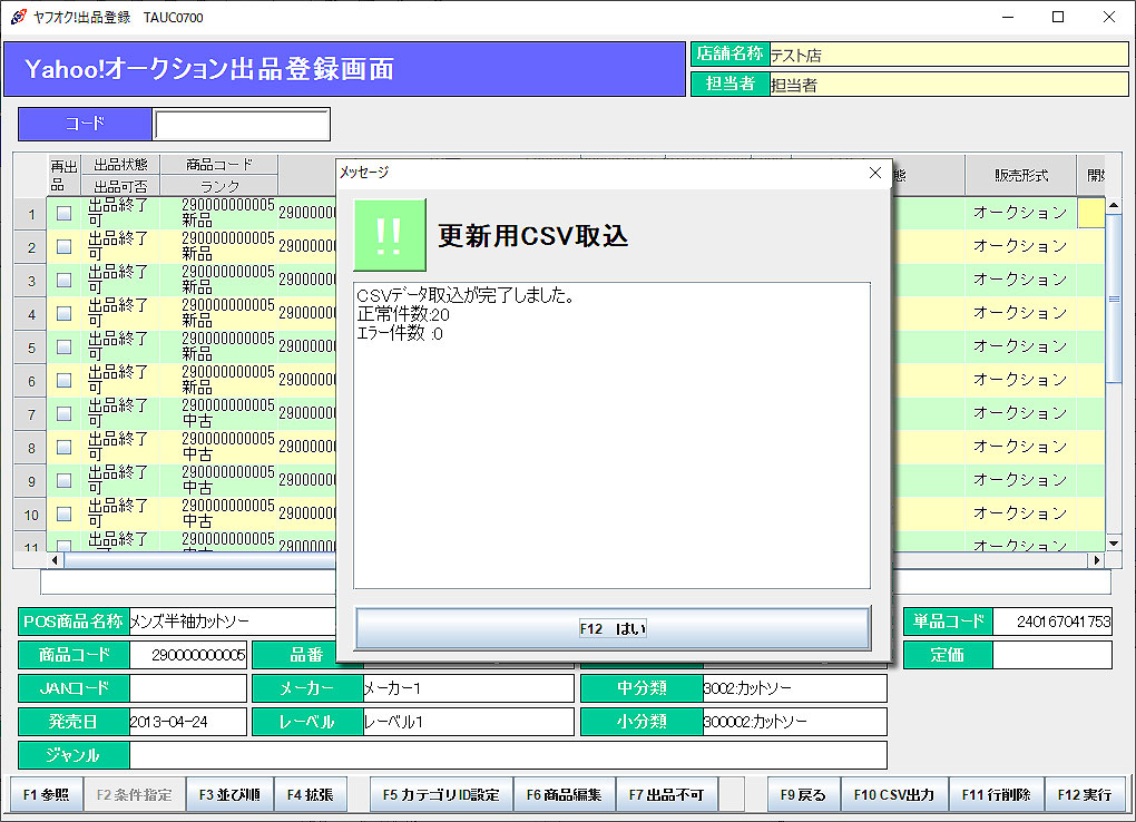 2.出品情報を編集、もしくは編集する必要がなければ、そのまま「F12実行」で出品します。