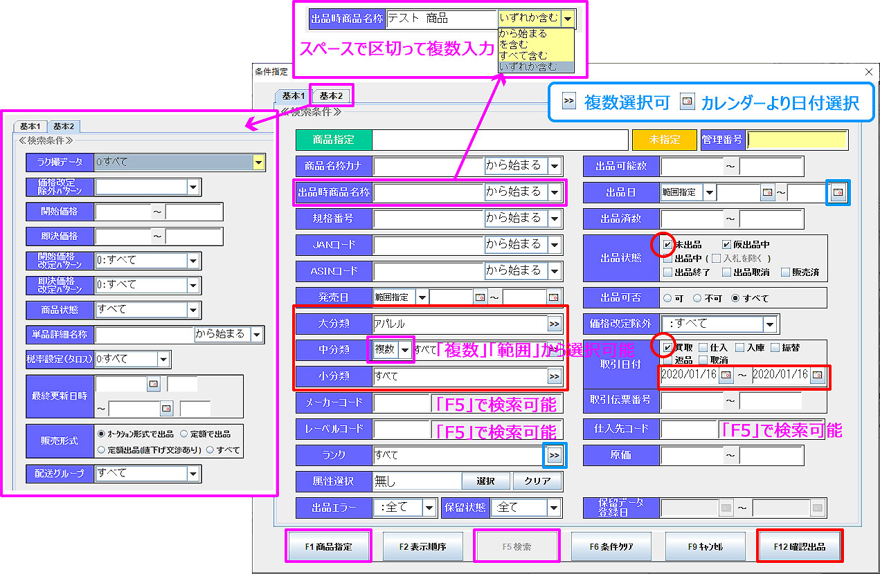 • 「F1参照」:過去に出品した商品の商品情報を参照します。詳しくはこちら